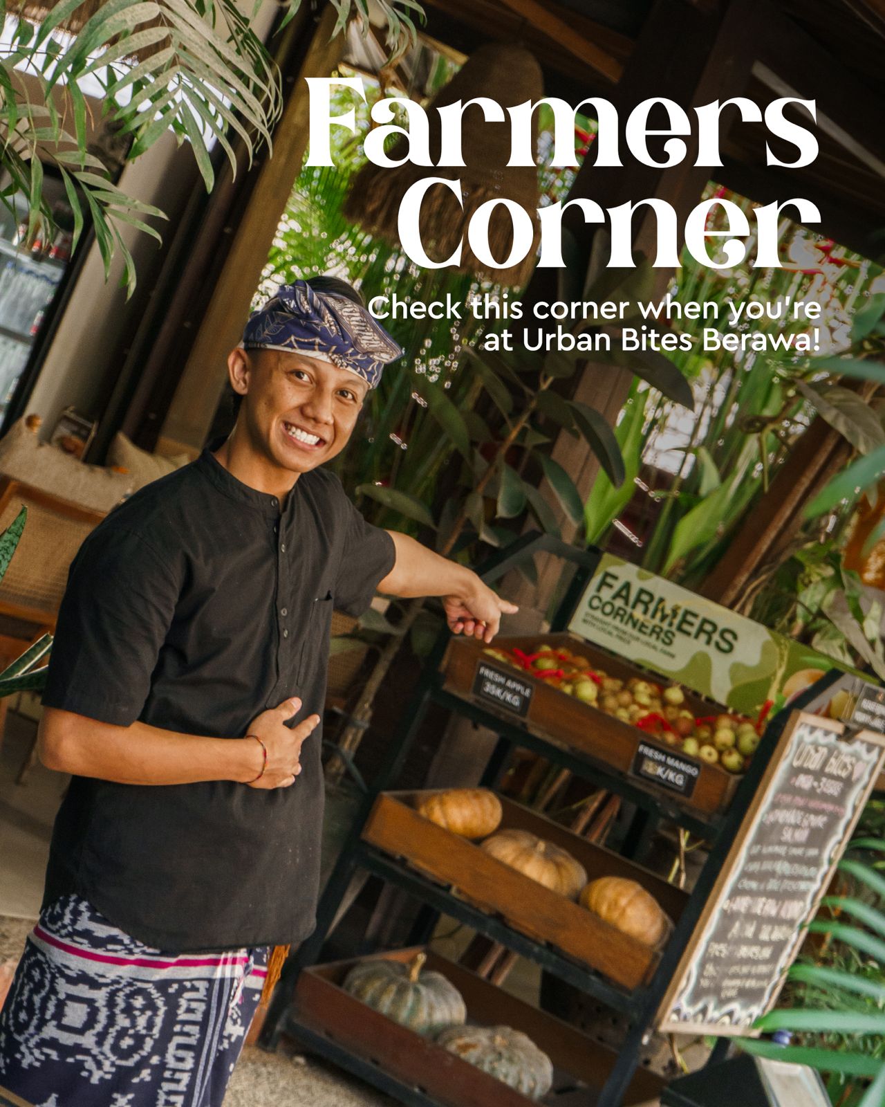 Farmers Corner at Urban Bites Berawa is a space dedicated to fresh, local finds and seasonal produce. Discover what’s in season, explore thoughtfully sourced ingredients, and get a closer look at the local elements that inspire our everyday dishes—bringing the connection between farm, kitchen, and table to life.